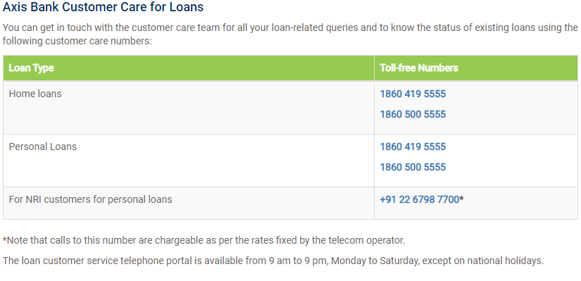Axis Bank Personal Loan Customer Care Number India Loan Walls - Axis bank contact details form.